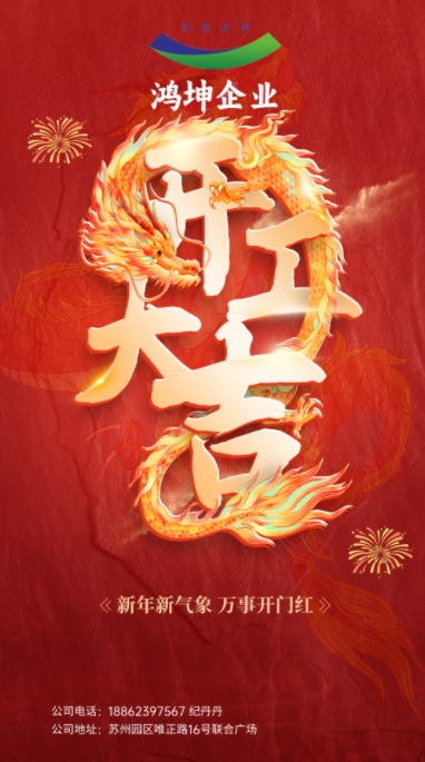 首先感謝廣大新老客戶對鴻坤企業的支持和認可,我們從2004年開始生產銷售材料至今已有20年歷史,離不開任何一位客戶的支持,在新的一年里,鴻坤攜手全體員工祝大家龍年行大運,財源廣進,闔家幸福!